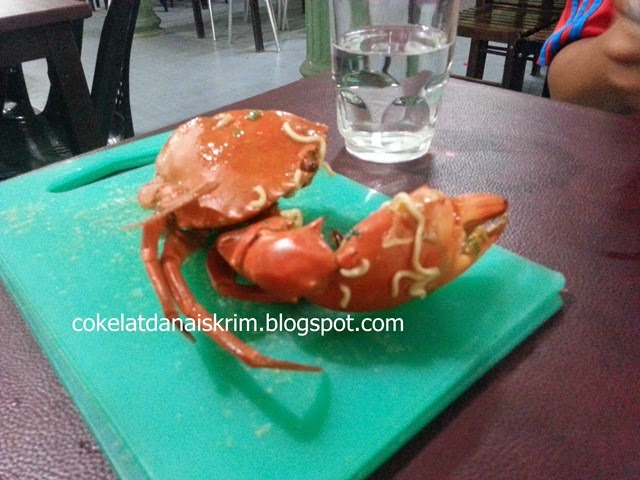 Kedai dia ni memang setiap kali kitorang pergi memang ramai. Nama kedai dia D'Syaz Cafe area dekat-dekat dengan Kem Kijang. Biasanya kitorang pergi sebelum maghrib tetapi memandangkan nak makan ketam ni ambil masa yang lama nak kena ketuk bagai so pergi je lepas maghrib. Tak adalah susah-susah nak kejar solat maghrib. Masa sampai tu tengok satu family keluarga chinese tengah makan maggi ketam. Agaknya sambut tahun baru cina sambil maan ketam kot.